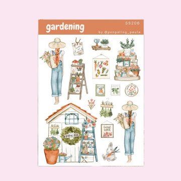 Suloinen tarra-arkki, jonka kuvituksessa on yksityiskohtaisesti piirrettyjä kukkasia ja muita suloisia asioita. Arkin koko: 140 mm x 80 mm. Arkin materiaali: läpinäkyvä vinyylipaperi.